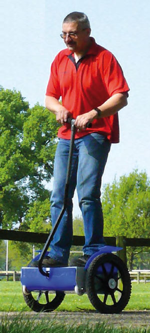 À construire soi-même, ce véhicule électrique à axe unique, qui s’équilibre automatiquement, retire son énergie d’accumulateurs au plomb étanches.